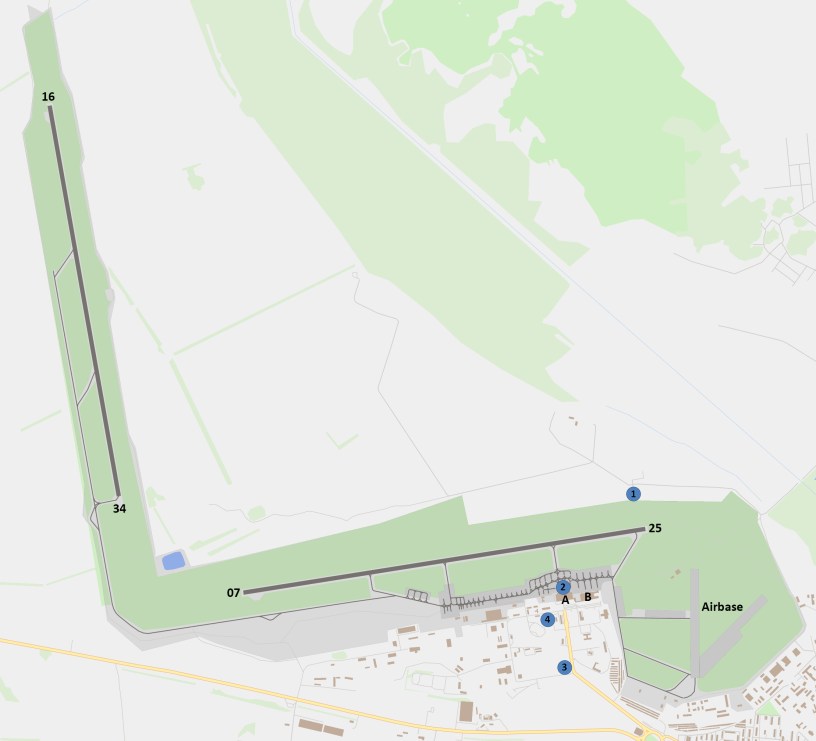 Small hillock in the north-eastern part of the airport’s perimeter provides excellent view on Runway 25. This is the main direction for landings in OVB. All Terminals’ operations can be seen from there too. Helicopters and military jets on airbase parking positions are visible from a distant view. This location is the best spotting position in Tolmachevo, but the access to it is difficult. The only way to get there is by car using dirt roads along the eastern perimeter or paved and unpaved roads from the direction of Marusino village north-east of the airport.